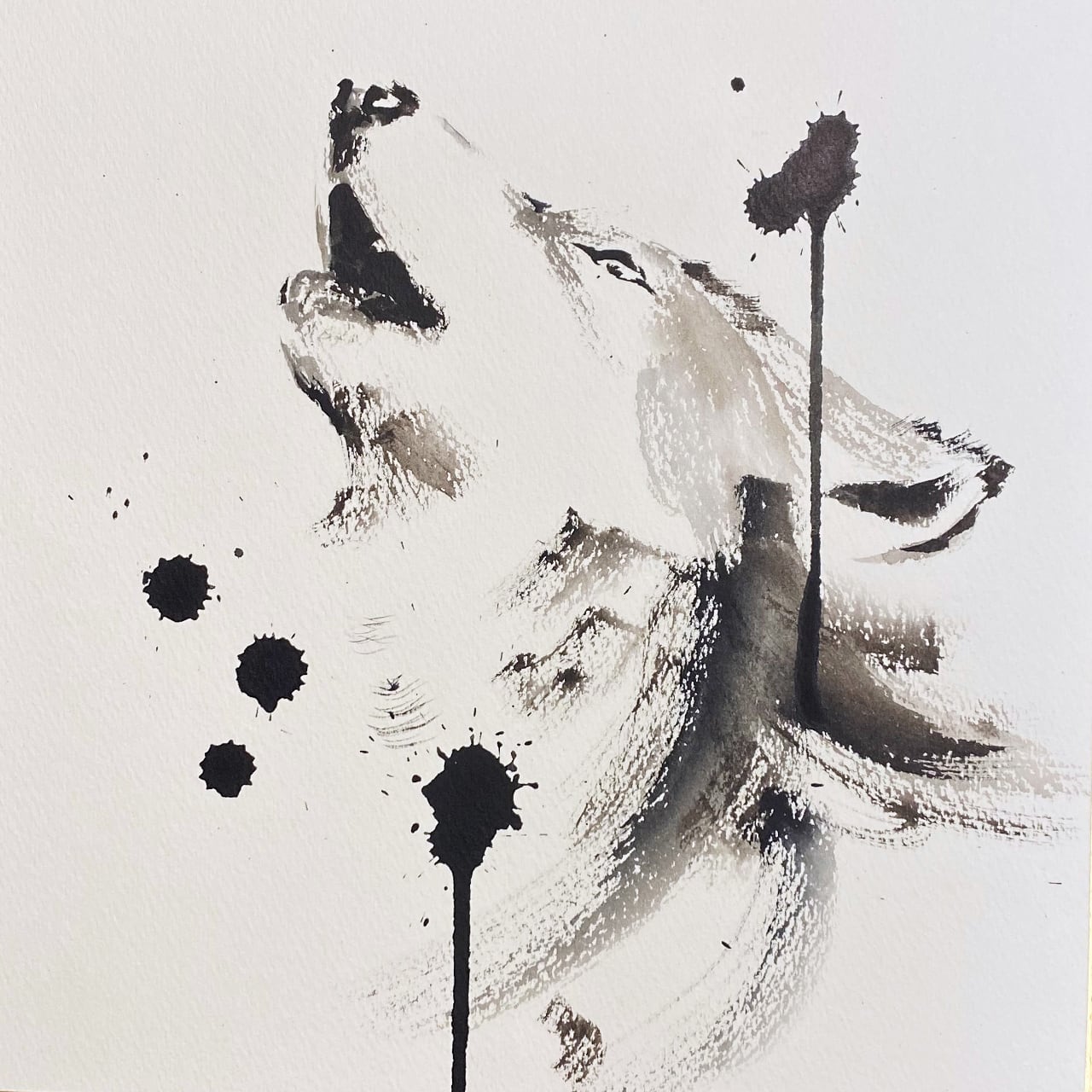 私の作品をさらにドローイングしたものです。 色紙に水彩のセピアとペインズグレイで描いてます。 手描き作品の1点ものです。 ※裏にサイン入り タイトル:遠吠え 制作年:2020年 サイズ:273x242mm