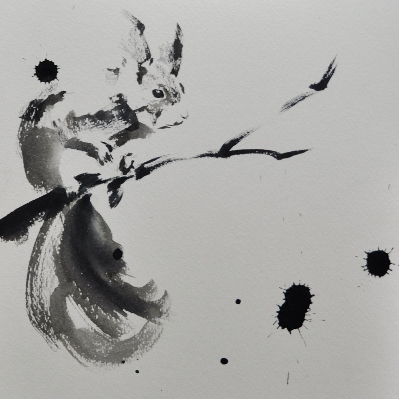 私の作品をさらにドローイングしたものです。 色紙に水彩のセピアとペインズグレイで描いてます。 手描き作品の1点ものです。 ※裏にサイン入り タイトル:リス 制作年:2020年 サイズ:273x242mm