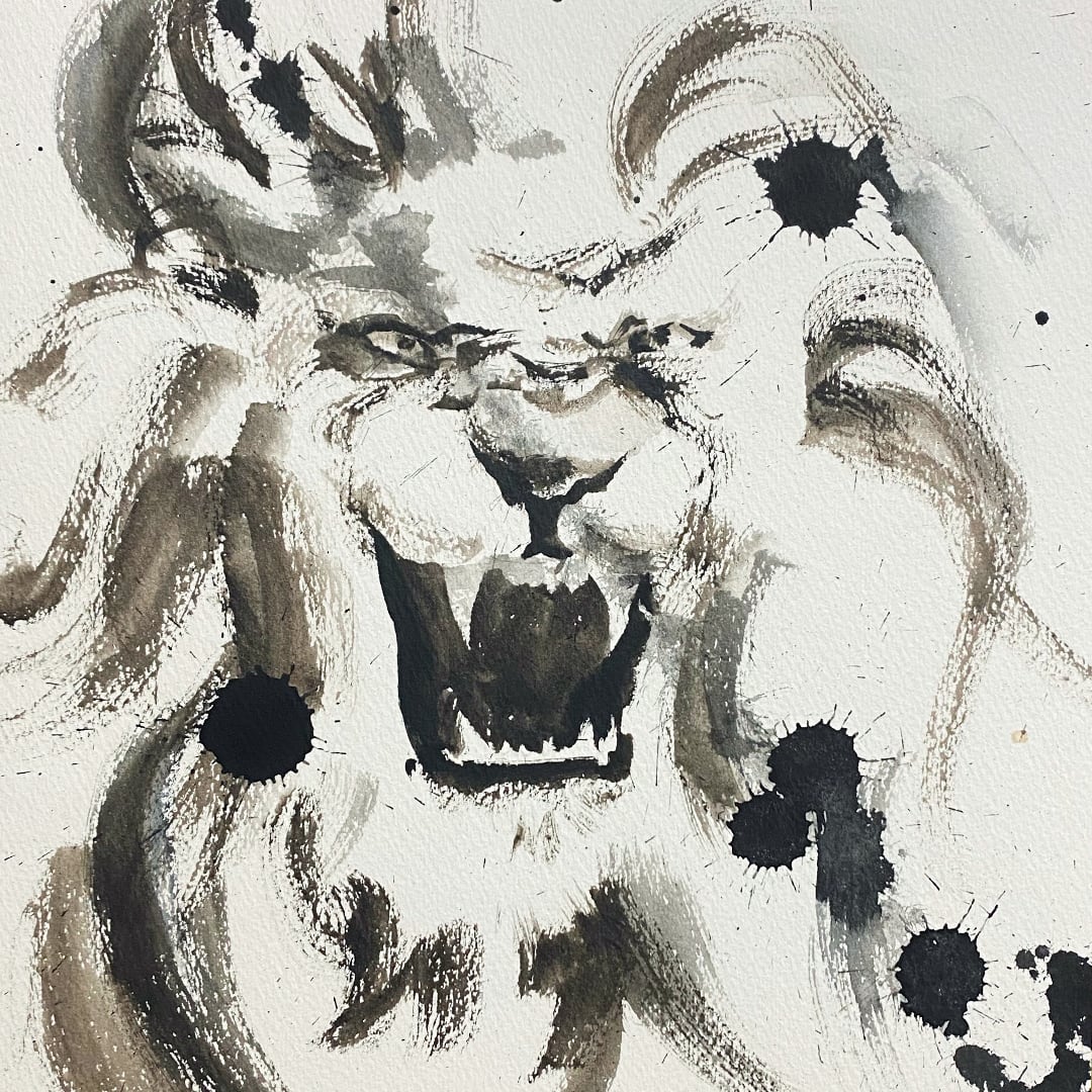 私の作品をさらにドローイングしたものです。 色紙に水彩のセピアとペインズグレイで描いてます。 手描き作品の1点ものです。 ※裏にサイン入り タイトル:ライオンⅢ 制作年:2020年 サイズ:273x242mm